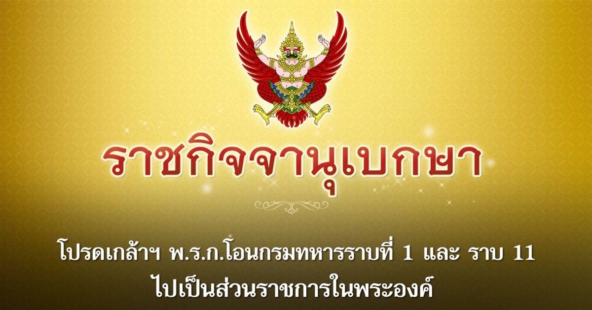 ราชกิจจานุเบกษา เผยแพร่ พระราชกำหนด โอนกรมทหารราบที่ 1 และ ราบ 11 ไปเป็นของหน่วยบัญชาการถวายความปลอดภัยรักษาพระองค์