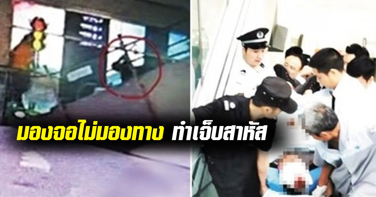 แน่นอนว่าพฤติกรรมดังกล่าวนั้นย่อมเป็นอันตราย การที่เอาแต่มองจอโดยไม่สังเกตสิ่งรอบข้าง ย่อมเพิ่มความเสี่ยงที่จะทำให้เกิดอันตรายได้เสมอ ดังเช่นกรณีล่าสุดที่เพิ่งเกิดขึ้นกับชายแซ่เฉิน วัย 35 ปี จากประเทศจีน ที่มีอันต้องเจ็บหนักเพราะพฤติกรรมเดินไปมองจอไปของเขา
