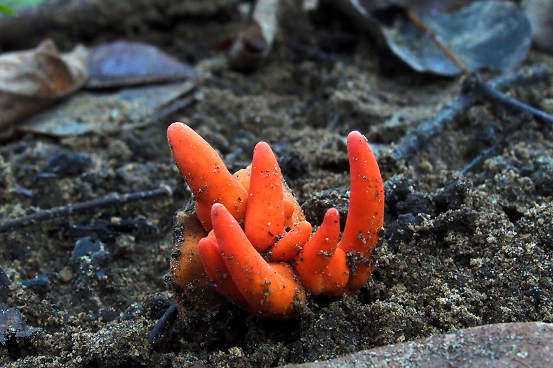 ซึ่งถูกบันทึกว่าเป็นครั้งแรกที่มีการพบเห็ดพิษชนิดนี้ในออสเตรเลียเห็ดปะการังไฟพิษ มีลักษณะเป็นสีแดงส้มลักษณะคล้ายปะการัง ตามรายงานระบุว่า มีถิ่นกำเนิดอยู่ที่ประเทศญี่ปุ่นและประเทศเกาหลี ในกรณีของผู้เสียชีวิตในอดีต เกิดจากคนนำเห็ดดังกล่าวไปชงชาดื่ม เนื่องจากสับสนกับเห็ดชนิดอื่นที่สามารถบริโภคได้ตามสูตรยาแผนโบราณ พิษของมันส่งผลต่อสมอง และทำให้การทำงานของอวัยวะภายในล้มเหลว