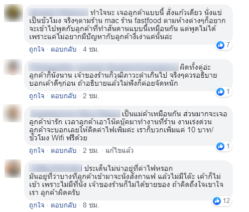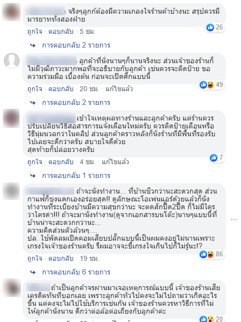 บ้างก็ตำหนิฝั่งลูกค้าที่ควรเกรงใจร้านให้มากกว่านี้ หากอยากนั่งนาน ๆ