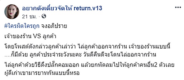 ต่อมาลูกค้าเถียงกลับอีกว่าตัวเองไม่ได้มาสร้างความเดือดร้อนอะไร