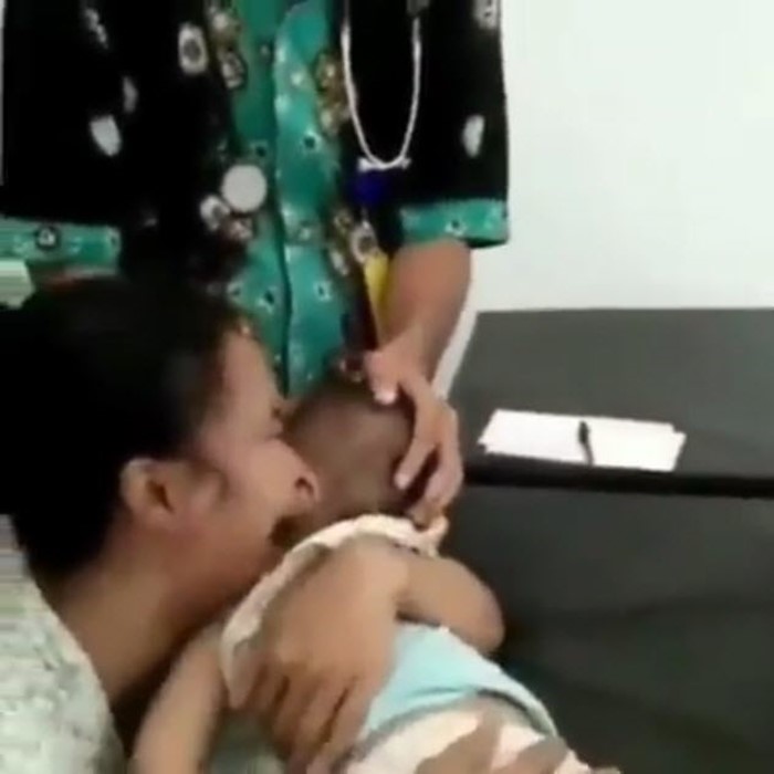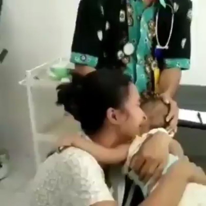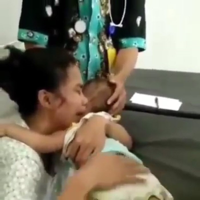 เธออุ้มลูกและพยายามเขย่าตัวลูกอยู่หลายครั้ง พลางร้องไห้อย่างหัวใจสลาย