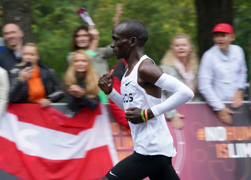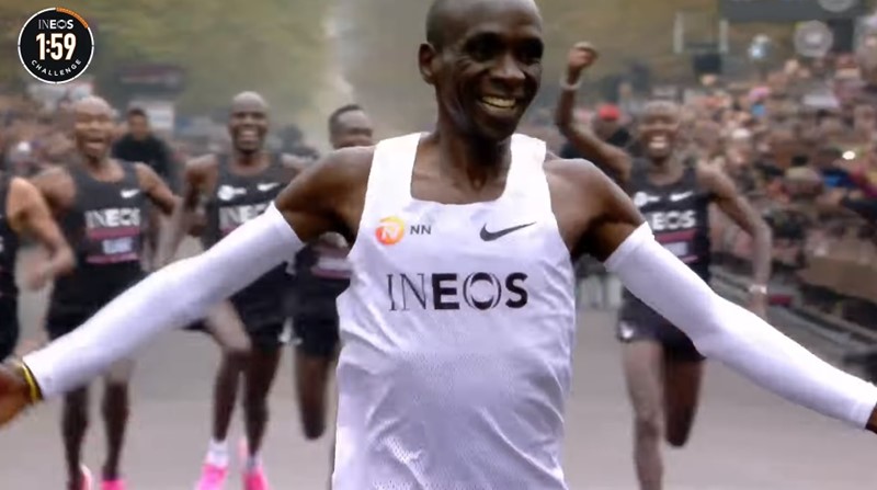 เอเลียด คิปโชเก นักวิ่งมาราธอนชาวเคนยา ทลายขีดจำกัดของมนุษย์ สร้างประวัติศาสตร์สำเร็จ วิ่งมาราธอนไม่ถึง 2 ชั่วโมง ใช้เวลาไป 1.59.40 ชั่วโมง