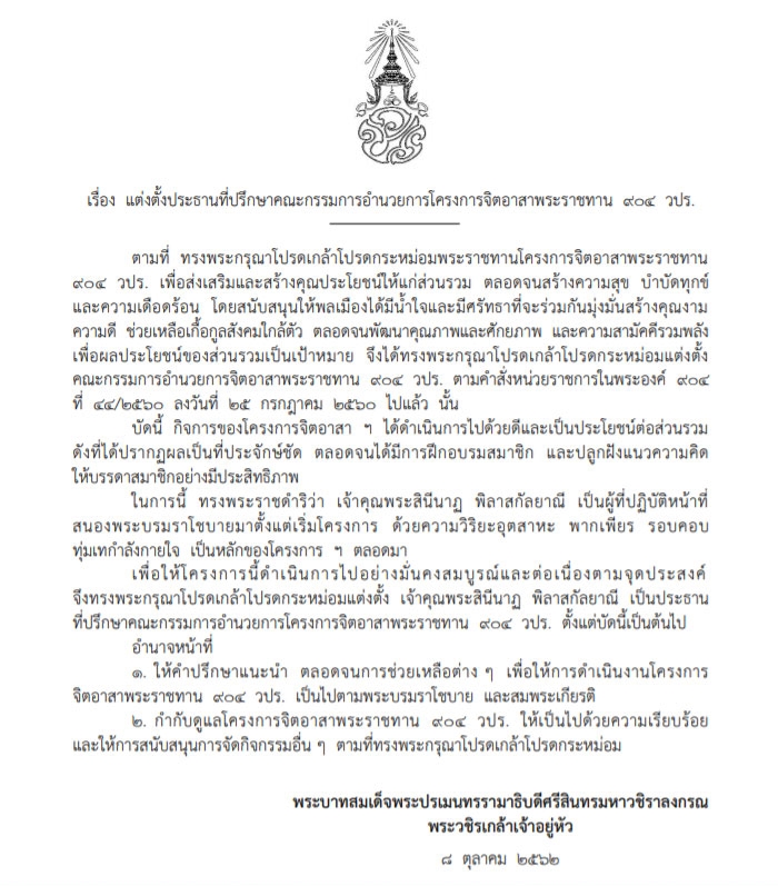 ทรงพระกรุณาโปรดเกล้าโปรดกระหม่อมพระราชทานโครงการจิตอาสาพระราชทาน 904