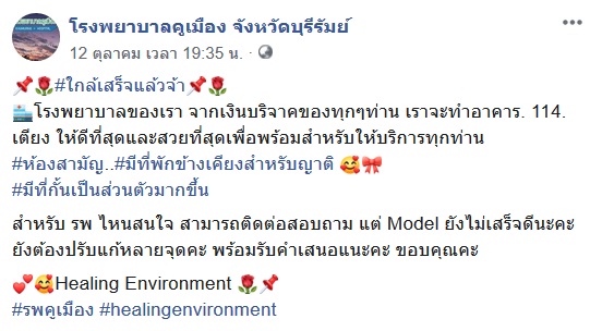 ภาพจาก เฟซบุ๊ก โรงพยาบาลคูเมือง จังหวัดบุรีรัมย์
