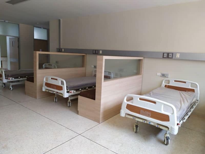 ดูเป็นระเบียบเรียบร้อย เนื่องจากมีการทำที่กั้นระหว่างเตียงของผู้ป่วย