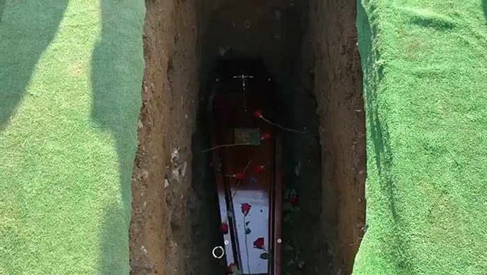 หลังจากนั้น เขาก็กล่าวขึ้นมาว่า "ฮัลโหลวว เปิดให้ฉันออกไปสักทีสิ ในนี้มันมืดฉิบเป๋งเลย ! เฮ้ย ๆ นั่นเสียงพระสวดหรือเปล่า ปล่อยให้ฉันออกไปเถอะน่า" โดยคำกล่าวสุดท้ายของชายชราคนนี้ ทำเอาลูกหลานหัวเราะทั้งน้ำตากันกลางงานศพ