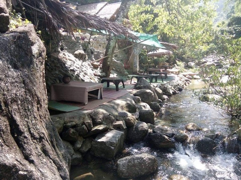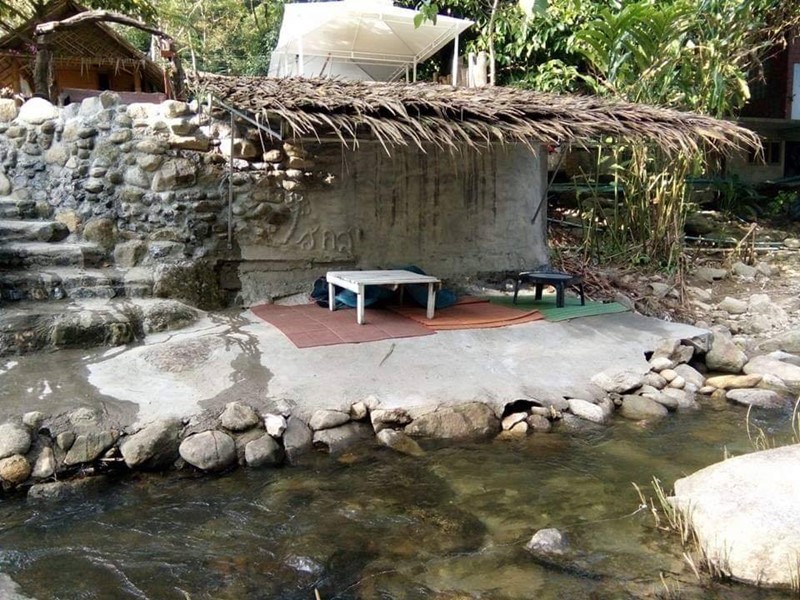 ร้าน ตั้งอยู่ริมถนน ด้านหลังมีการเทคอนกรีตล้ำเข้าไปในลำน้ำ ความยาวประมาณ