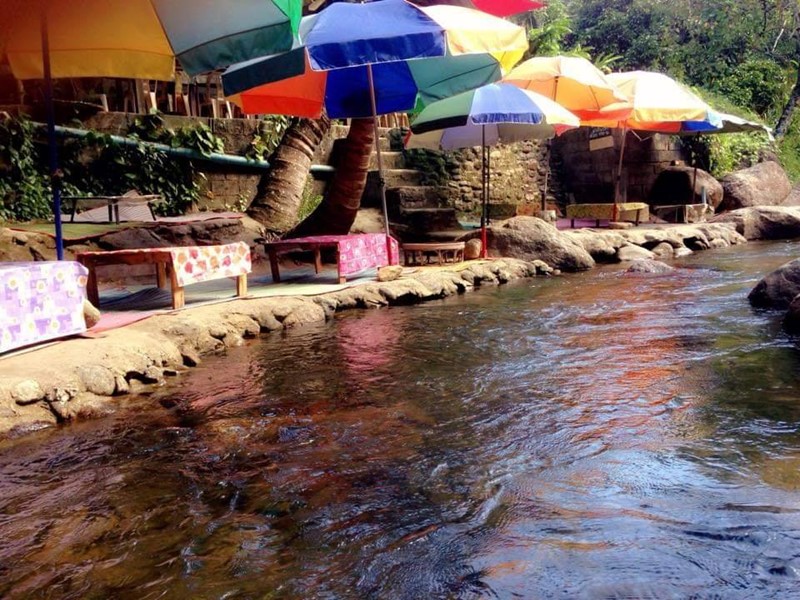 โดยร้านอาหารตั้งเป็นเพิงพัก กางร่มตั้งโต๊ะกินกันในน้ำ