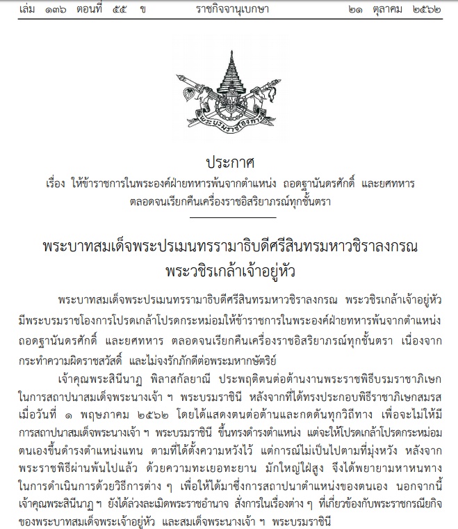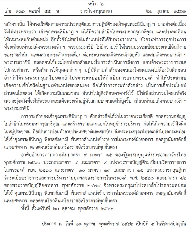 เปิดข้อมูล ราชสวัสดิ์ 10 ประการ มีอะไรบ้าง หลัง เจ้าคุณพระสินีนาฏ พิลาสกัลยาณี ถูกถอดยศ เนื่องจากกระทำความผิดราชสวัสดิ์และไม่จงรักภักดี