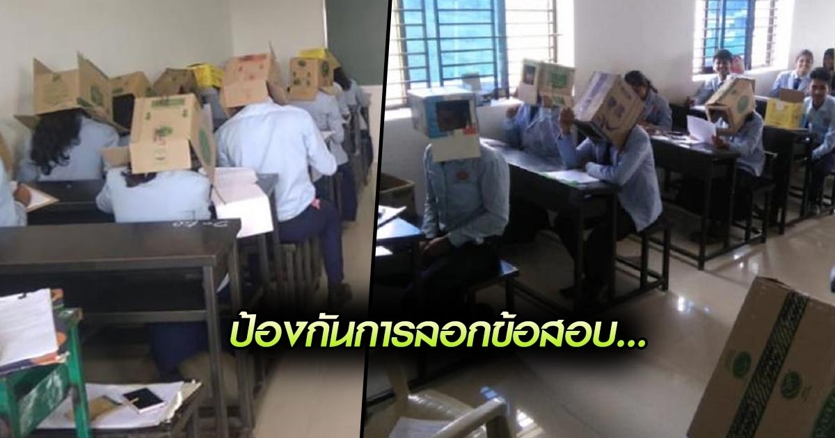สำหรับลังที่นำมาให้เด็กใช้ครอบหัว เป็นลังกระดาษที่มีขนาดใหญ่พอครอบหัวได้ ด้านหน้าลังจะมีการเจาะเป็นช่องเอาไว้ เพื่อให้นักเรียนสามารถก้มดูกระดาษข้อสอบของตนเองได้ แต่จะไม่สามารถหันไปมอง หรือแอบชำเลืองดูข้อสอบของเพื่อน ๆ ได้