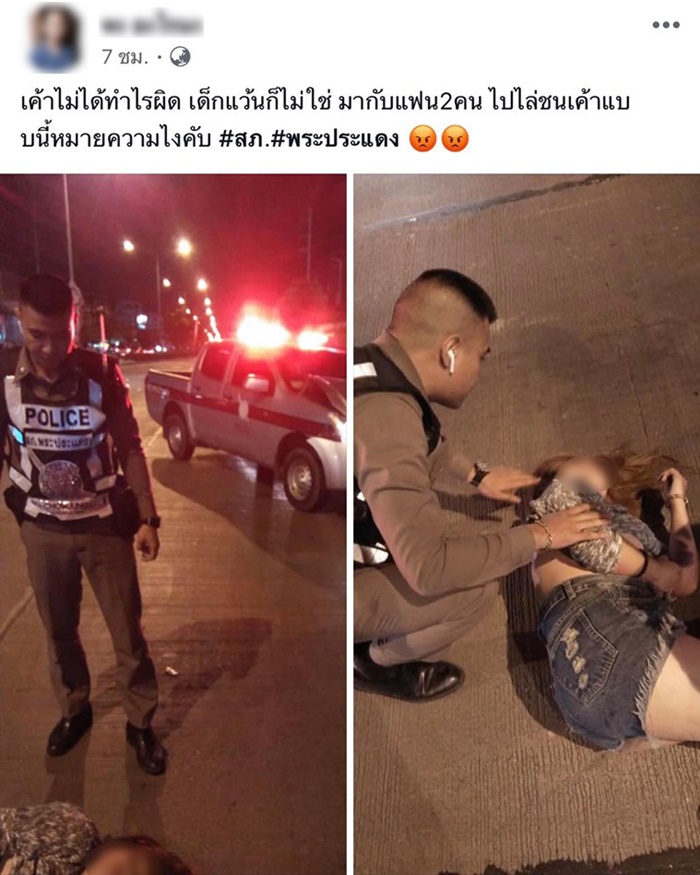 ร้องตำรวจ สภ.พระประแดง ขับรถไล่ชน 2 สาวเจ็บสาหัส อยู่ห้องไอซียู เหตุเข้าใจผิดว่าเป็นเด็กแว้น พี่สาวมั่นใจตำรวจตั้งใจขับชน ด้านตำรวจแจงแล้ว ไม่ตั้งใจขับชน แต่รถ จยย. 2 สาวเบรกกะทันหัน จนตำรวจเบรกไม่ทัน