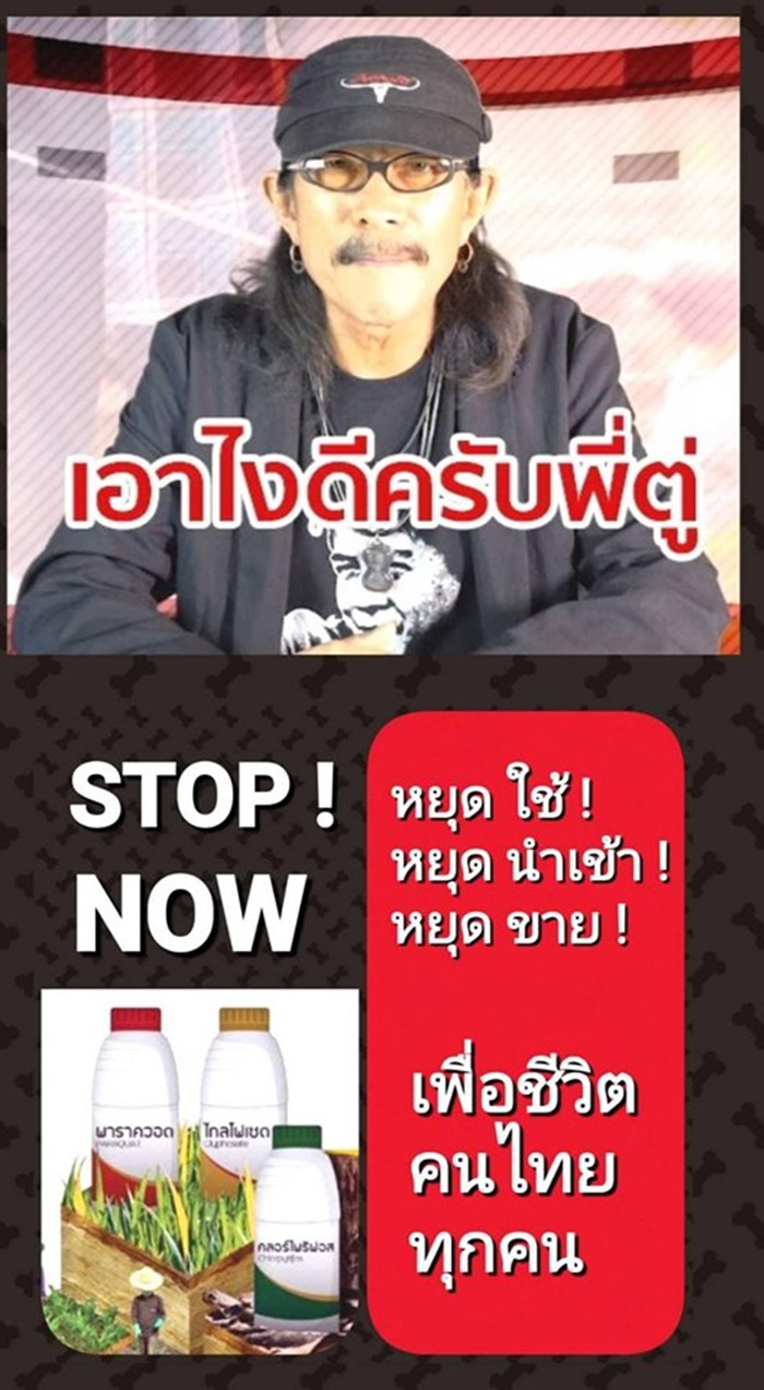 อย่างไรก็ตาม แอ๊ด คาราบาว มีจุดยืนเรื่องสนับสนุนให้รัฐบาลเลิกใช้ 3 สารเคมีทางการเกษตรอยู่แล้ว และเคยแต่งเพลง "เอาไงดีครับพี่ตู่" เพื่อตั้งคำถามกับนายกรัฐมนตรีและรัฐบาล เมื่อช่วงกลางเดือนกรกฎาคมที่ผ่านมา
