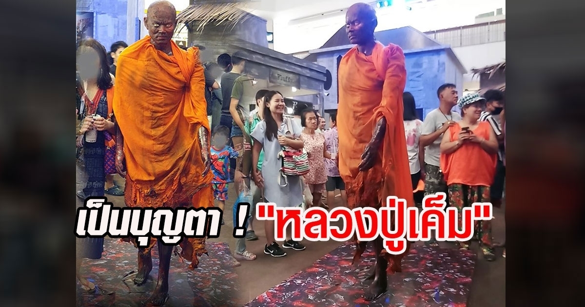ห้างดังจัดงานฮาโลวีน โชว์รูปปั้นหลวงปู่เค็มลุยกองไฟ คนเดินผ่านไป-มา ยกมือไหว้แทบไม่ทัน บุญตาแท้ ๆ ได้เห็นสังขารเกจิดัง
