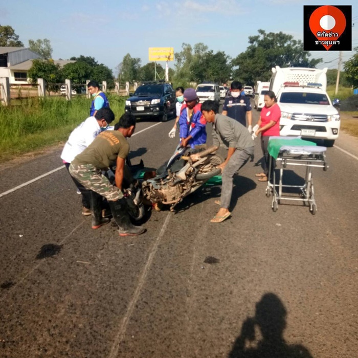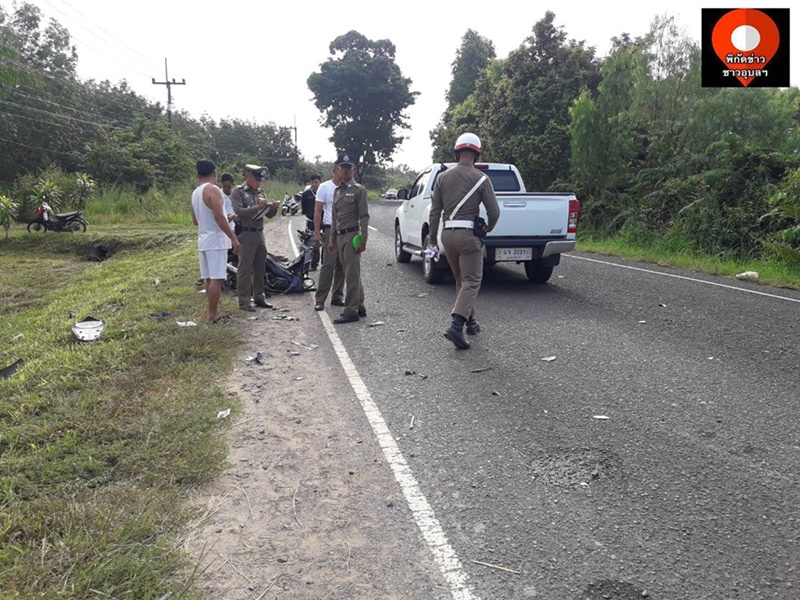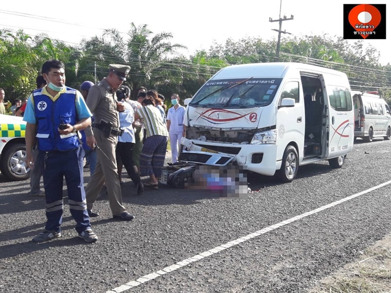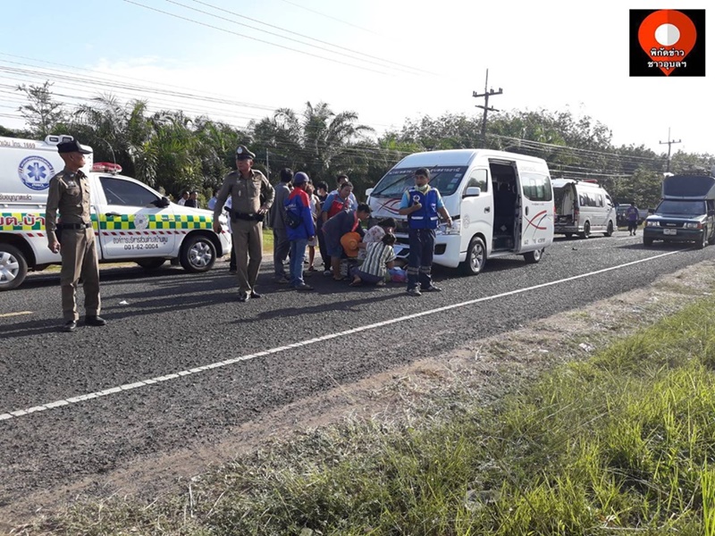 สภ.นาจะหลวย จ.อุบลราชธานี ได้รับแจ้งเหตุรถตู้ชนกับรถจักรยานยนต์