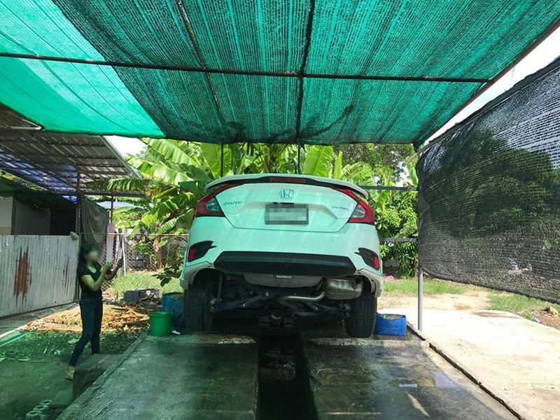 สีขาวคันหนึ่ง อยู่บนแท่นล้างรถที่ร้านคาร์แคร์แห่งหนึ่งใน จ.ระยอง