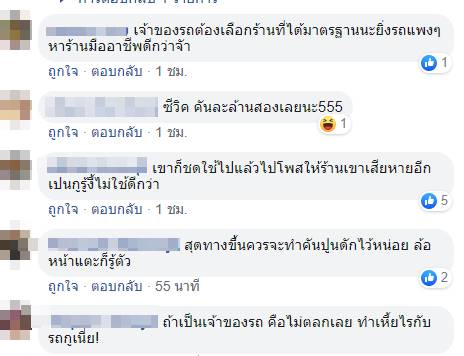 ขณะที่คอมเมนต์อื่น ๆ ต่างระบุว่า เจ้าของรถต้องเลือกร้านที่ได้มาตรฐาน ขณะเดียวกัน เจ้าของร้านก็ต้องเลือกใช้ลูกน้องที่มีความชำนาญมากกว่านี้