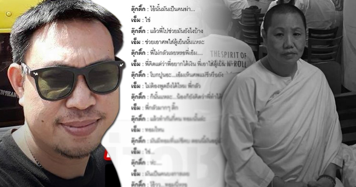 เปิดบทสนทนา เอ็มและเมีย ผู้ต้องสงสัยฆ่าเศรษฐินีเชียงใหม่ ลั่นคนชื่อต้นเป็นคนฆ่า ส่วนตนเป็นคนช่วย มีทอมที่เศรษฐินีคบเป็นคนบงการ ส่วนเงินที่ได้ 3 แสนบาท เอาไปเช่าคอนโดใน กทม.
