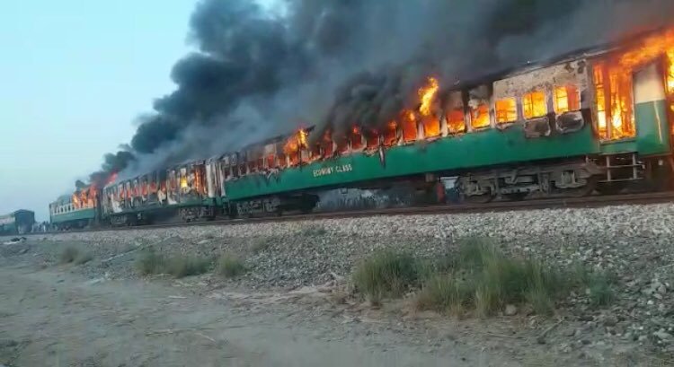 เกิดเหตุรถไฟปากีสถานไฟไหม้ เพลิงลุกท่วมทั้งขบวน ต้นเหตุเพราะถังแก๊สทำอาหารระเบิด เสียชีวิตแล้วอย่างน้อย 71 ราย บาดเจ็บไม่ต่ำกว่า 40 ราย