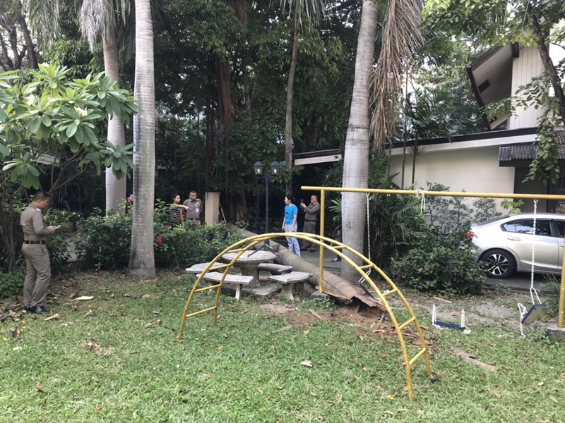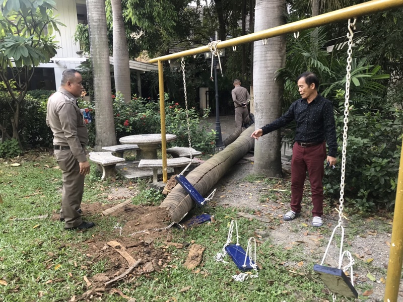 ซึ่งมีโต๊ะม้านั่ง ชิงช้าและเครื่องเล่น จู่ ๆ ต้นปาล์มต้นดังกล่าวก็ค่อย
