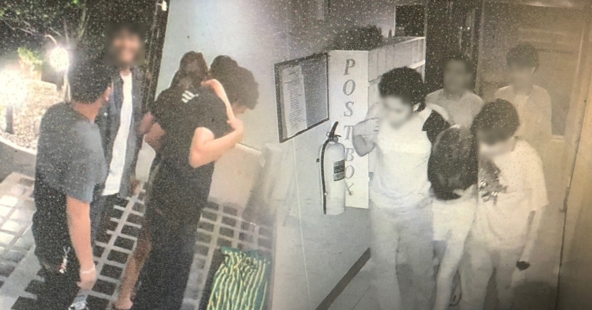 ด้านช่องวัน ได้เผยภาพขณะที่ชายทั้ง 4 คน พาน้องสาวขึ้นห้อง ทั้งหมดได้หยุดรอที่หน้าประตู และพยายามควักคีย์การ์ดขึ้นมาแตะ แต่ละคนมีท่าทีปกติ และในตอนนั้น จะเห็นได้ว่าน้องสาวเองเดินเซจนต้องพยุง
