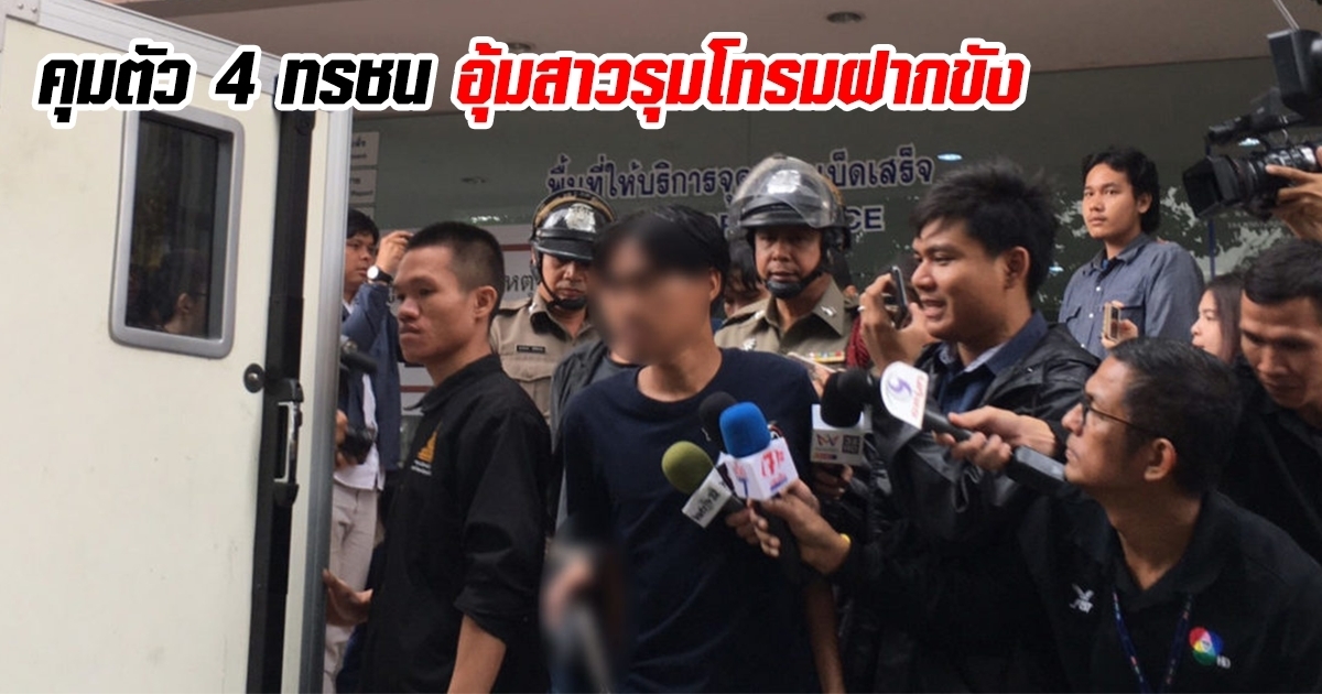 จากกรณีชายวัยรุ่น 4 คน อุ้มสาวสภาพคล้ายหมดสติ ไปรุมโทรมที่ห้องพักย่านดินแดง ซึ่งขณะนี้ทางตำรวจได้จับกุมตัวได้แล้วทั้ง 4 คนนั้น ล่าสุด (2 พฤศจิกายน 2562) สปริงนิวส์ เมื่อเวลา 12.10 น. พนักงานสอบสวน สน.ดินแดง ได้คุมตัวผู้ต้องหาทั้ง 4 ราย ตามหมายจับในข้อหาร่วมกันกระทำชำเราในลักษณะโทรมหญิงและลักทรัพย์ในเวลากลางคืน นำตัวไปฝากขังที่ศาลอาญา