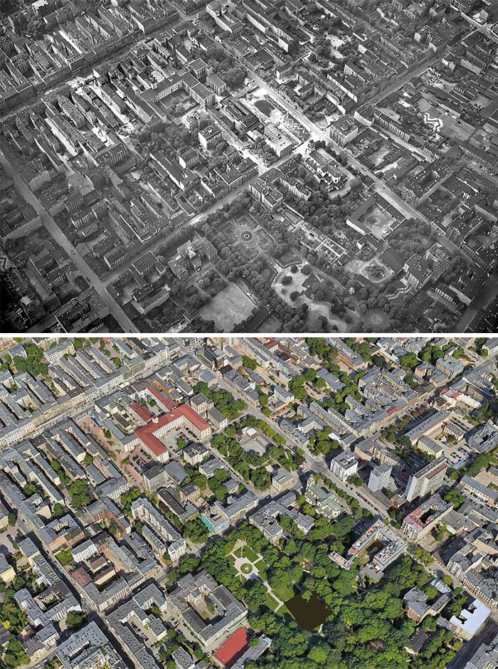 ภาพถ่ายทางอากาศเมืองลอดซ์ ประเทศโปแลนด์ ปี 1942 กับปี 2560