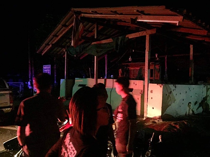 จากการสอบสวน พบว่า กำลัง ชรบ. และ อส. มาเข้าเวรยามทั้ง 14 คน ขณะที่กำลังปฏิบัติหน้าที่อยู่นั้น มีคนร้ายทั้งใช้รถจักรยานยนต์และเดินเท้าเข้ามาประชิดป้อมยาม แล้วใช้ปืนอาก้าและปืนเอ็ม 16 ปืนลูกซอง ปืนพกสั้น ยิงใส่ป้อมยามนับร้อยนัด จนเจ้าหน้าที่ตั้งตัวไม่ทัน และต้องล่าถอยเข้าสวนยางพารา และได้ปล้นอาวุธปืนลูกซอง อาวุธปืนสั้นของ ชรบ. และ อส. ไปด้วย โดยในตอนนี้ เจ้าหน้าที่ยังไม่สามารถเข้าตรวจสอบที่เกิดเหตุได้ เพราะเกรงว่าคนร้ายจะซุกระเบิดเอาไว้