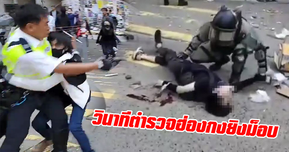 เปิดคลิปโหด นาทีตำรวจฮ่องกง ชักปืนยิงม็อบชัด ๆ 3 ครั้ง จนแน่นิ่งลงไปกองกับพื้น จมกองเลือดบนถนน ชัด ๆ กลางวันแสก ๆ ชาวบ้านสุดแตกตื่น