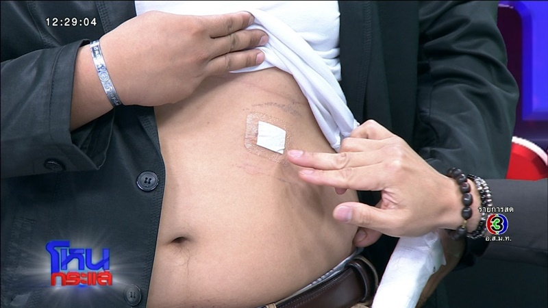 สมเจตน์ : ไม่ได้ตอบโต้ครับ ผมไม่มีการต่อสู้ ไม่ได้ทำร้ายเขาเลย เขาก็เข้ามา แทงที่หัวเย็บ 5 เข็ม จงใจแทงแต่ผมหลบ แล้วก็โดนที่ท้องเย็บ 1 เข็ม ผมปัดทัน นิ้วอีก 5 เข็ม เอ็นขาด