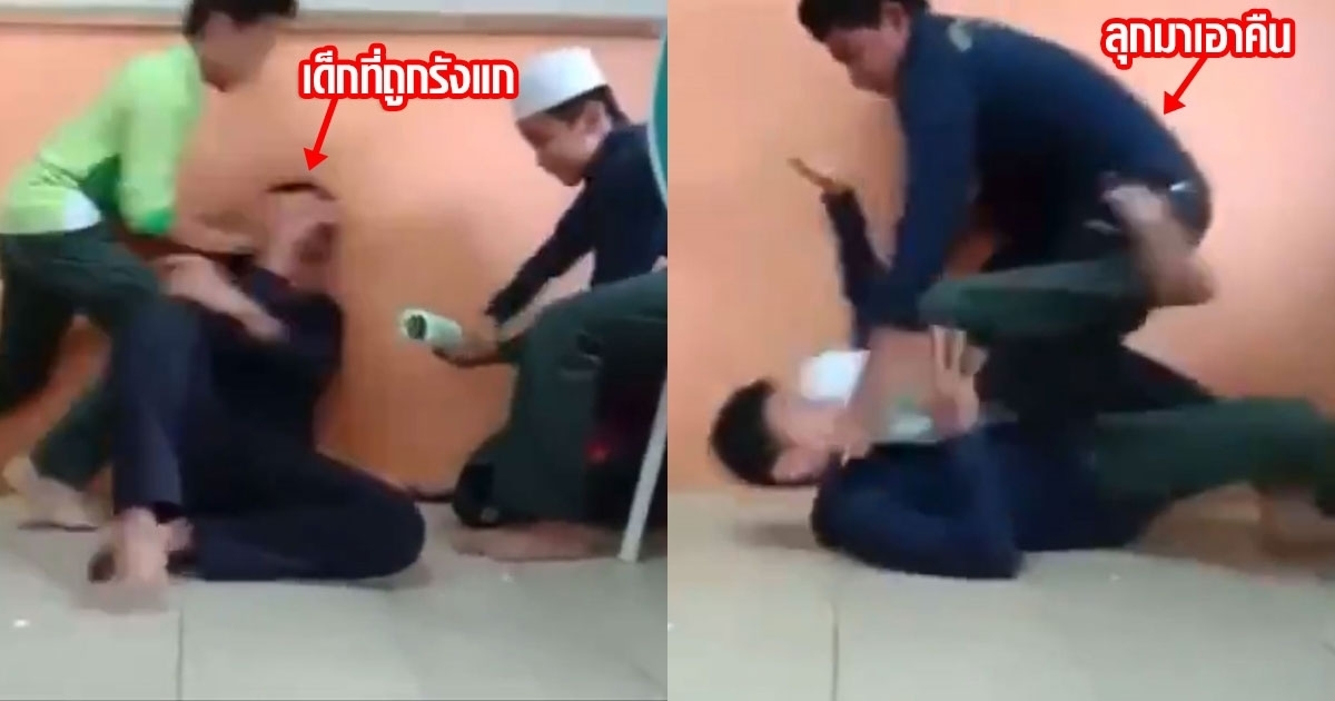 คลิปเด็กโดนเพื่อนรุมแกล้งในห้อง ทั้งเอาหนังสือฟาด กดหัวต่อย แถมโดนเตะ ตอนแรกนิ่งทน ไม่ขัดขืน สุดท้ายทนไม่ไหว ลุกขึ้นมาสู้กลับ อัดเด็กเกเรคืน ไม่ยอมหงออีกแล้ว !