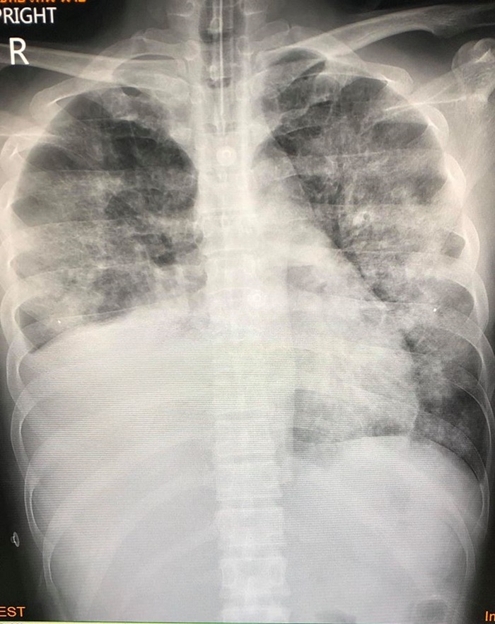 อาการไม่ดีขึ้น เมื่อเอกซเรย์ปอดก็พบว่ามีฝ้าขาวทั้งสองข้าง