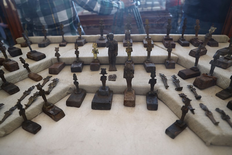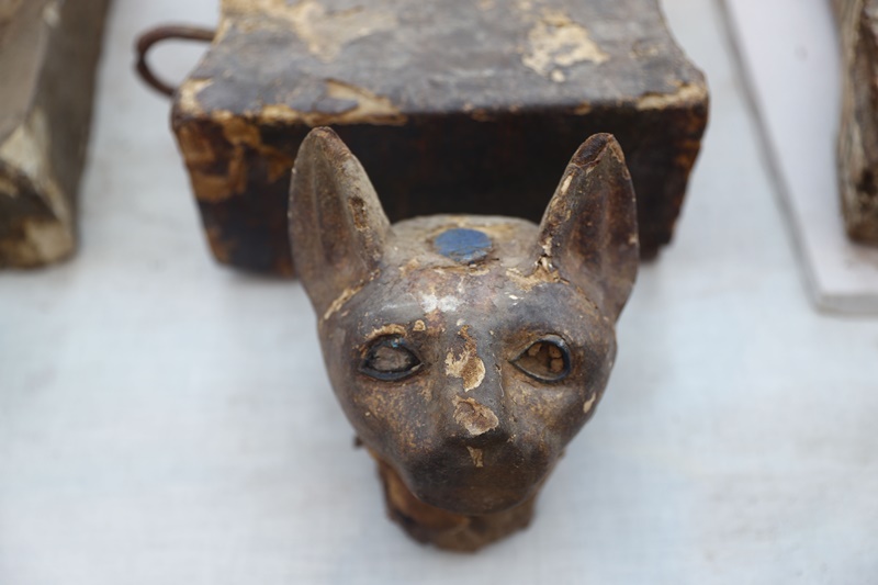 ส่วนหนึ่งของโบราณวัตถุที่คณะนักโบราณคดีประจำสภาค้นพบคือ ชุดรูปปั้นแมว 75 ตัว ซึ่งเป็นตัวแทนบัสเตต เทพีแมวอียิปต์โบราณ รูปปั้นไม้ขนาดเล็กของเทพีไนธ์ รูปปั้นสัมฤทธิ์ของเทพเจ้าโอซิริส 57 ตัว และรูปปั้นเทพเจ้าฮอรัส