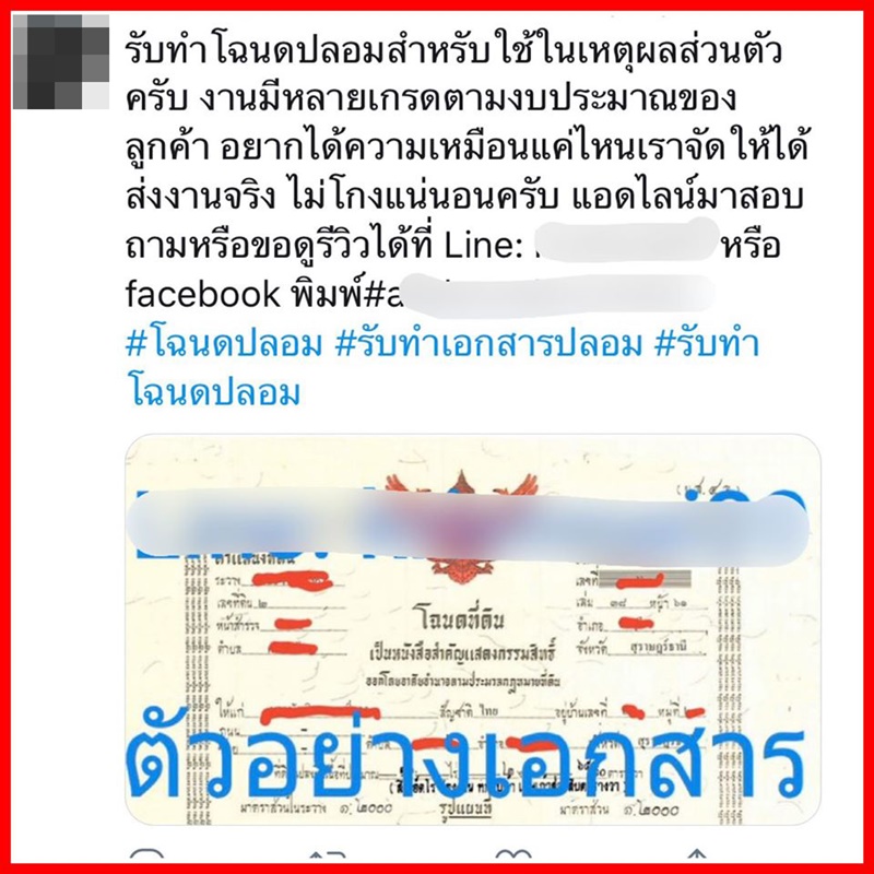 มีการออกมาโพสต์เตือนภัยให้ประชาชนระมัดระวังเกี่ยวกับเอกสารปลอม