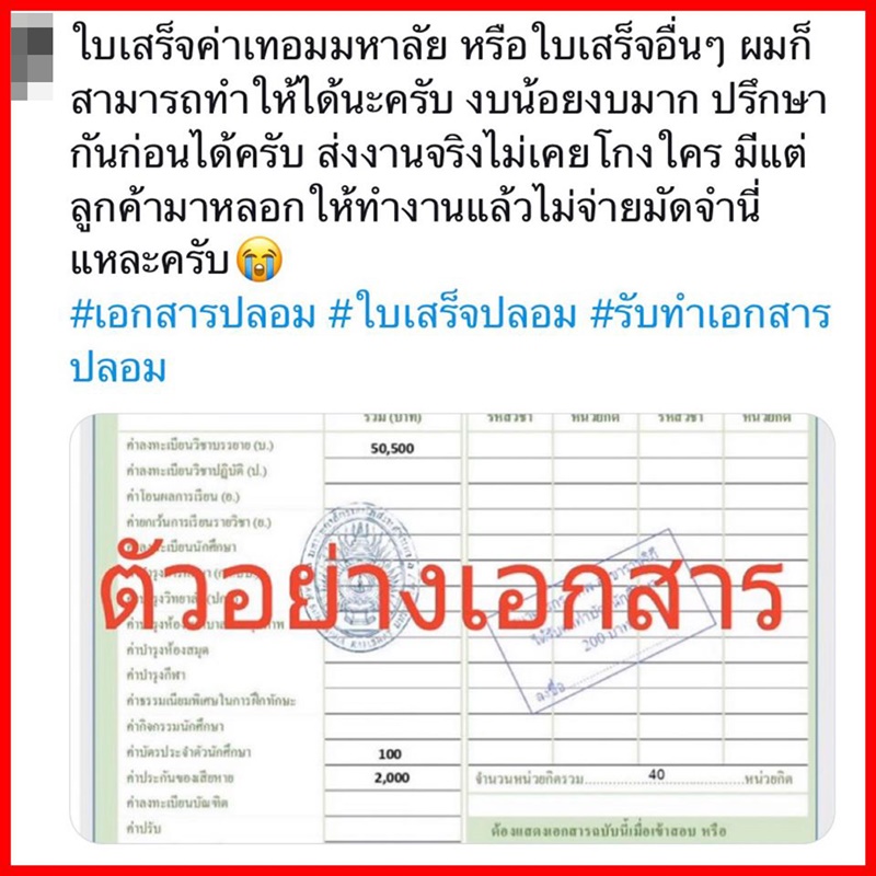 จากกรณีที่มีร้านออนไลน์รับทำเอกสารปลอมระบาดอยู่ในขณะนี้