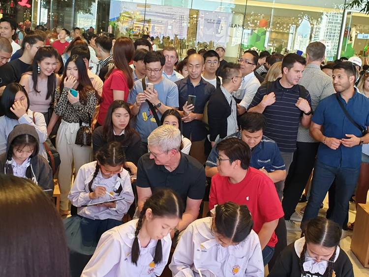 นอกจากนี้ ยังมีภาพที่ ทิม คุก เดินทางไปที่ห้างสรรพสินค้า ICONSIAM โดยมีผู้คนตามมาถ่ายรูป และมองดูด้วยความสนใจเป็นอย่างมาก