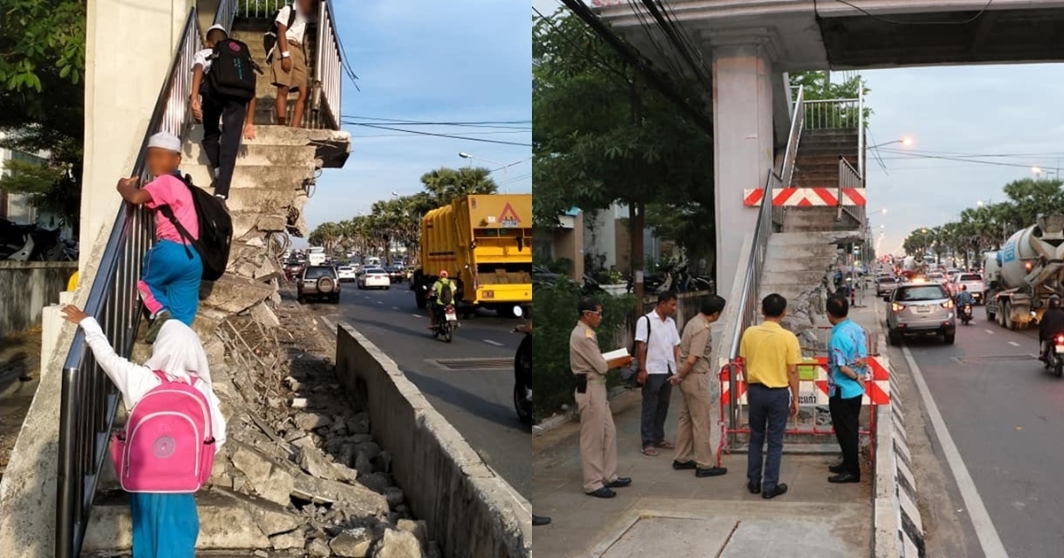 แชร์ว่อน ภาพนักเรียนเดินข้ามสะพานลอยชำรุด ห่วงเป็นอันตราย หลังโดนรถบรรทุกเสียหลักพุ่งชนพังเสียหาย ล่าสุด รองผู้ว่าฯ ภูเก็ต สั่งปิดซ่อมแซมแล้ว จี้ให้แล้วเสร็จภายใน 7 วัน