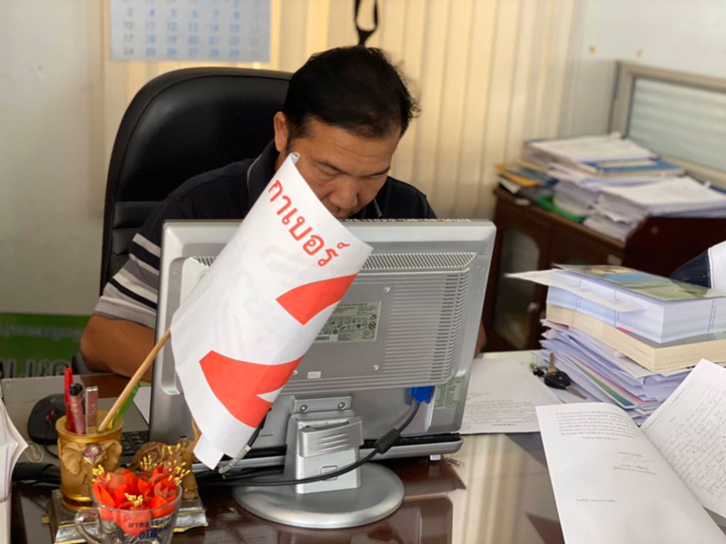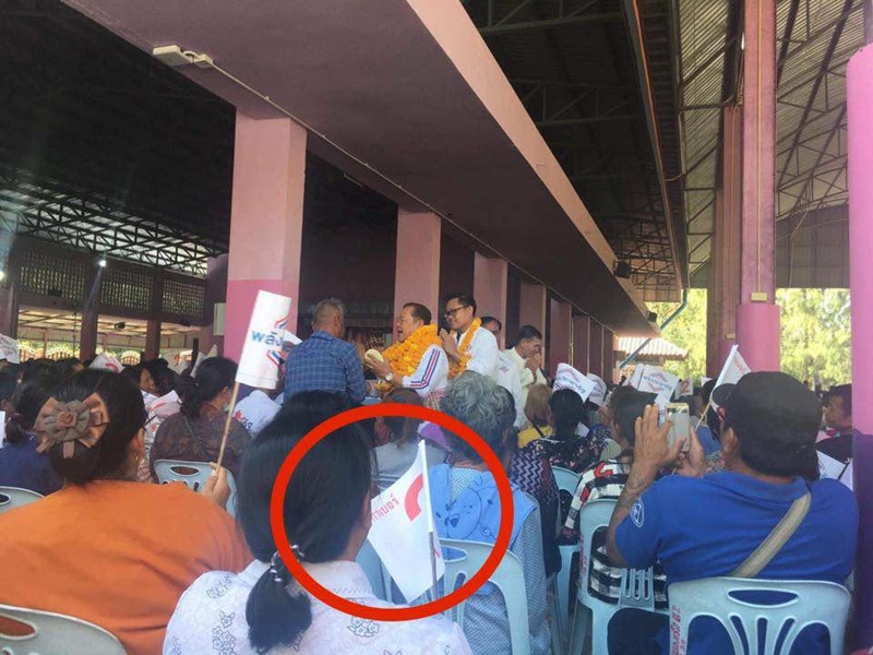 กรณีกำนันกาบัตรแทนคุณยายวัย 78 ปี แต่พบว่าขณะร้องเรียนที่โต๊ะของเจ้าหน้าที่มีธงติดไว้ ระบุข้อความว่า กาเบอร์ 2