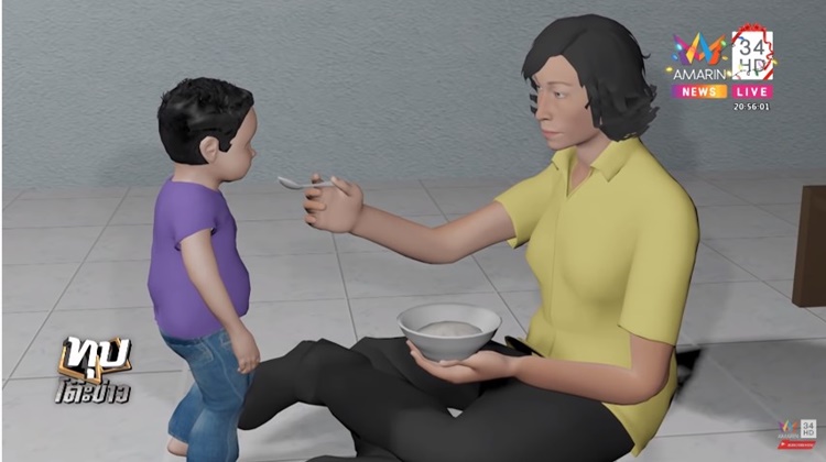 ทั้งนี้ นางสาวฝ้าย (นามสมมติ) เพื่อนบ้าน เผยว่า ตนพบเห็นว่านางสาวมีน (นามสมมุติ) แม่ของเด็ก เป็นลูกครึ่งเมียนมา-ไทย ช่วงที่ทำงานร้านอาหารตามสั่ง น.ส.มีน มักพาลูกไปทำงานด้วย เวลาให้ลูกกินข้าว ก็จะทำข้าวไข่เจียว ข้าวไข่ดาวให้ลูกกิน หากลูกกินช้า ก็จะเอาพริกน้ำปลามาคลุกข้าวให้กิน หรือหั่นพริกสด ๆ มาให้เด็ก 1 ขวบกิน บางครั้งลูกไม่กินก็จะเอาช้อนยัดปาก แล้วถือไม่เรียวตี ตนก็เคยถามว่า ให้เด็ก 1ขวบกินพริกได้อย่างไร นางสาวมีนก็จะบอกว่า ลูกกินได้