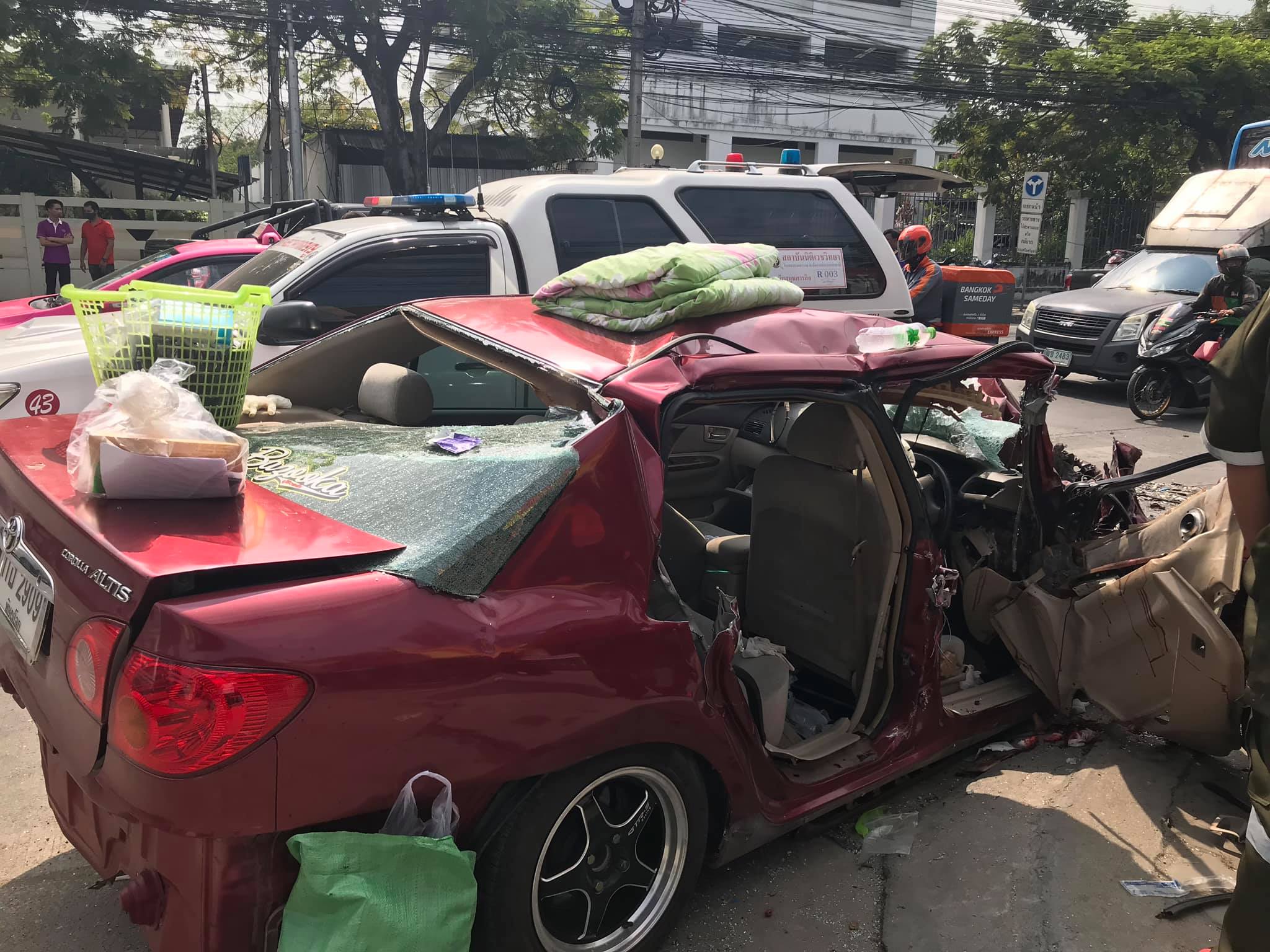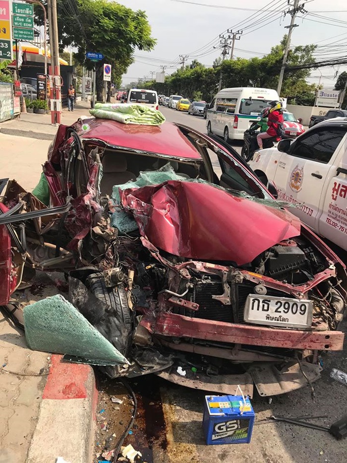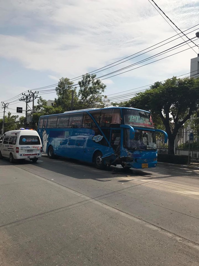 ทั้งนี้ เดลินิวส์ออนไลน์ รายงานว่า เหตุการณ์ดังกล่าวเกิดขึ้นบริเวณปากซอยเฉลิมพระเกียรติ ร.9 ซอย 11 แขวงหนองบอน เขตประเวศ เป็นถนน 4 เลน ไม่มีเกาะกลาง มีรถบัสทะเบียนป้ายเหลือง 31-6269 กรุงเทพฯ ของบริษัท พี.ที.ทรานส์ เอ็กซเพรส จำกัด สภาพกันชนหน้าฝั่งขวาเสียหาย ไฟเลี้ยวแตก และรถยนต์ยี่ห้อโตโยต้า อัลติส สีเลือดหมู ทะเบียน กธ 2909 พิษณุโลก พังยับเยิน คนขับชื่อ นายวันชัย แห้วเพ็ชร เสียชีวิต