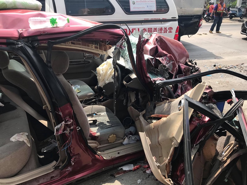 เปิดคลิปนาทีรถบัสเสียหลักข้ามเลน ชนประสานงาเก๋งสวนทาง คนขับเก๋งถูกอัดก๊อบปี้ตายคาที่ เจ็บอีก 1 เป็นหนุ่มขี่แกร็บ - คนขับรถบัสอ้างรถเสียการทรงตัวข้ามเลนไปชน