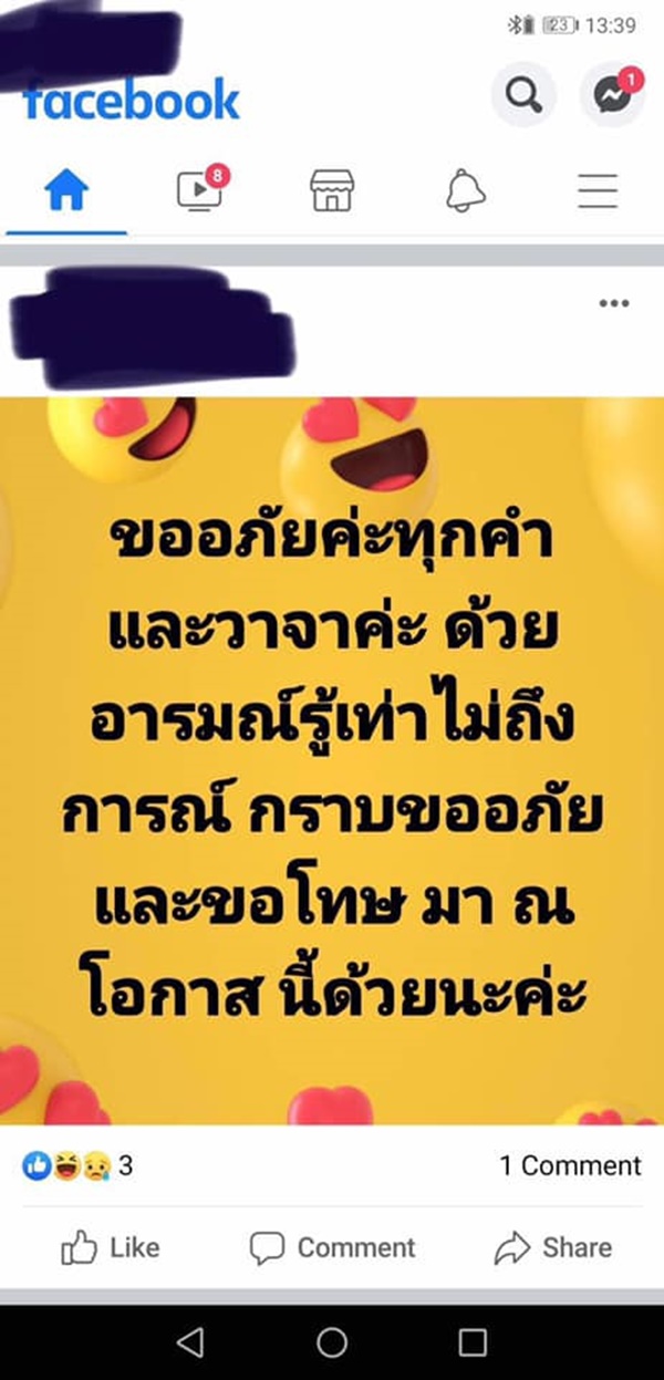 ขณะที่ในเฟซบุ๊กของพนักงานรายดังกล่าว ภายหลังจากเกิดเหตุพบว่า ได้มีการลบโพสต์ต้นเหตุออกไปแล้ว และได้มีการโพสต์ใหม่ ระบุว่า "ขออภัยค่ะ ทุกคำและวาจาค่ะ ด้วยอารมณ์รู้เท่าไม่ถึงการณ์ กราบขออภัยและขอโทษมา ณ โอกาสนี้ด้วยนะคะ"