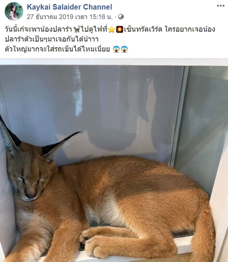 วันที่ 2 มกราคม 2563 ขณะนี้โซเชียลได้เกิดดราม่า เมื่อยูทูบเบอร์ชื่อดัง เก๋ไก๋ สไลเดอร์ ได้เลี้ยงแมวป่าคาราคัล ที่ตั้งชื่อว่า ปลาร้า ซึ่งเป็นแมวป่าที่มีราคาสูงหลักแสนบาท และได้ทำคลิปพาแมวป่าไปเที่ยวห้าง ไปดูไฟในช่วงเทศกาลปีใหม่ และมีการโพสต์เชิญชวนแฟน ๆ ให้มาเจอตัวจริง ซึ่งระหว่างที่เดินทางไป ปลาร้าได้เกิดฉี่แตกในรถ และพยายามดิ้นด้วยความกลัวและไม่คุ้นชิน