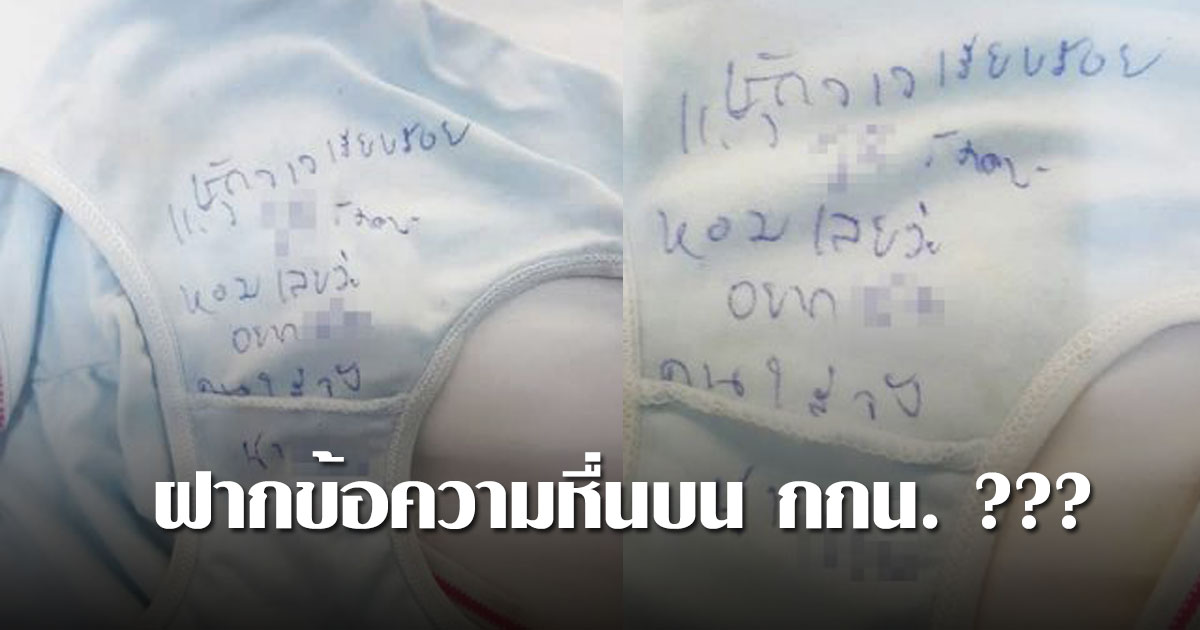 โดย เดลินิวส์ออนไลน์ รายงานว่า เจ้าของเรื่องเผยว่า ตนตากกางเกงชั้นในไว้หน้าบ้าน พอไปเก็บผ้าเข้าบ้าน กำลังจะสวมกางเกงชั้นในก็พบว่ามีข้อความเขียนไว้ จึงได้แจ้งทางหอพักให้ตรวจสอบกล้องวงจรปิดและดำเนินคดีต่อไป เพราะการกระทำดังกล่าวเข้าข่ายคุกคามทางเพศ ชีวิตและทรัพย์สินอาจจะไม่ปลอดภัย อีกทั้งตนยังอยู่ห้องคนเดียวเพราะสามีไปทำงานต่างจังหวัด