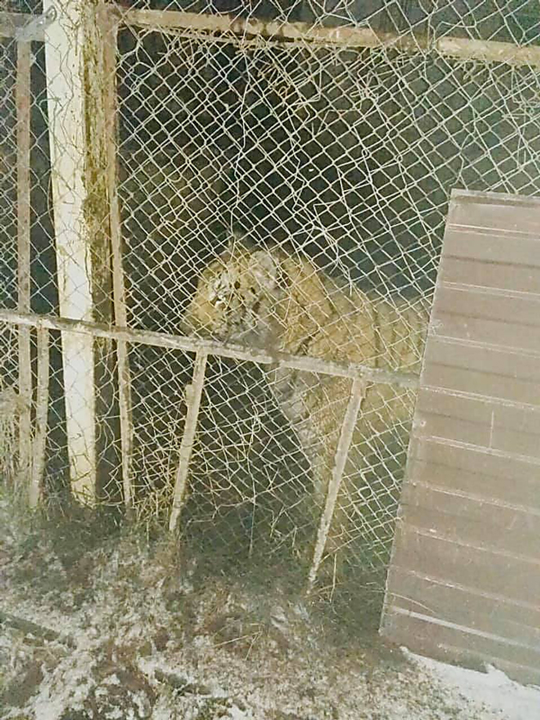 ส่วนเสืออีก 3 ตัว ตัวหนึ่งอายุมากแล้ว ถูกยังในกรงแคบ ๆ ขนาด 3 ตารางเมตร ส่วนอีก 2 ตัว อยู่ในกรงที่ใหญ่กว่านั้นเล็กน้อย เสือทั้ง 6 ตัวต่างหิวโหยและกระหายน้ำ พวกมันไม่มีอะไรให้กิน ไม่มีน้ำ ได้แต่หาเลียน้ำจากพื้นกินเพื่อประทังชีวิต
