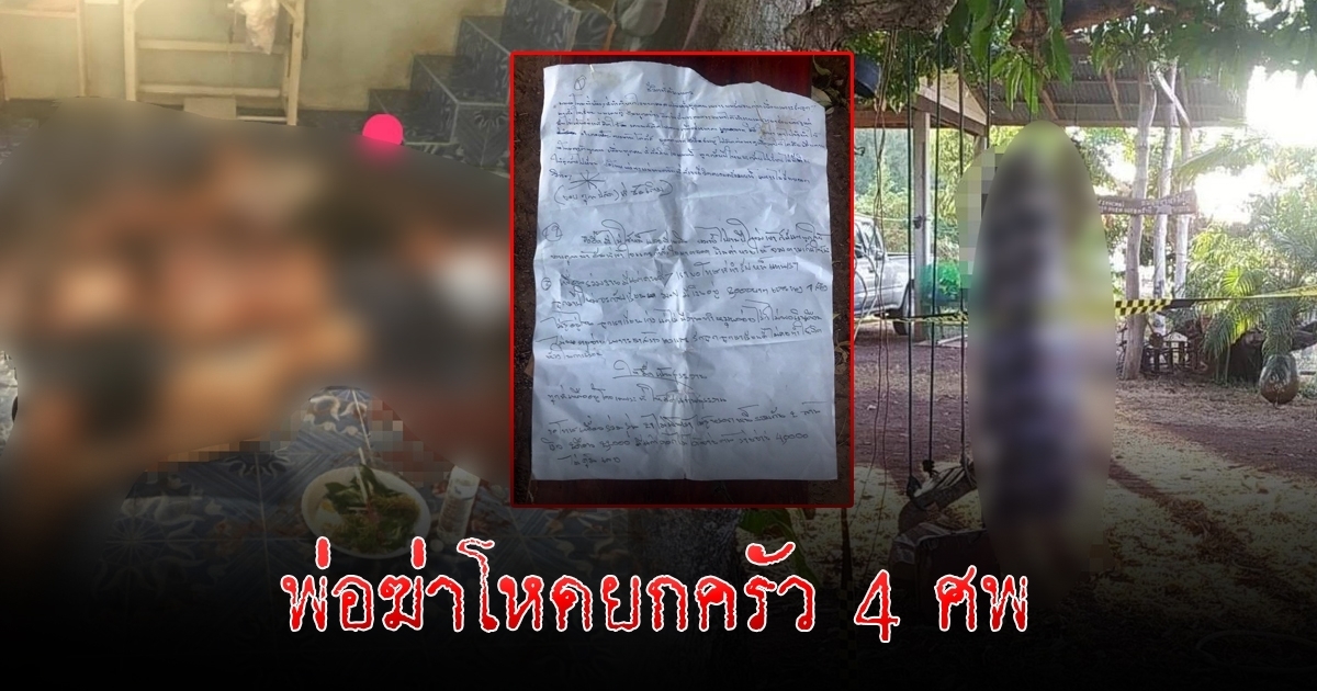 พ่อฆ่าลูก-เมีย ตายยกครัว 4 ศพ ด้านพ่อทิ้งจดหมายลาตาย หนี้สินล้นตัว ลูกกลับมาบ้านปีใหม่ ก็ไม่มีเงินส่งให้ไปเรียน ด้านลูกคนโตเรียนจบก็ตกงาน ทุกอย่างรุมเร้าเหลือเกิน