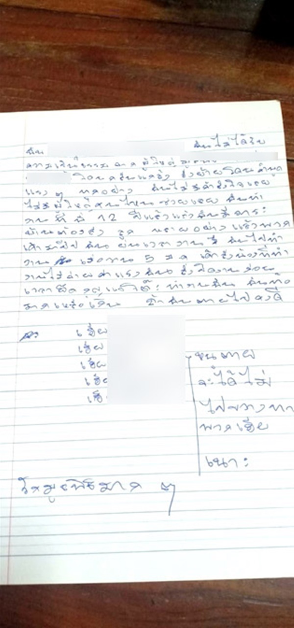นอกจากนี้ยังเขียนจดหมายลาตายทิ้งไว้ด้วยว่า "ฉัน น.ส.สุนันทา ฉันไม่ได้รับความเป็นธรรมจากผู้ใหญ่มูลนิธิ โดนกลั่นแกล้ง สั่งย้าย โดนคำพูดแรง ๆ ทุกอย่าง ฉันไม่มีกำลังใจเลย ไม่มีผู้ใหญ่คนไหนช่วยเลย ฉันทำงานที่นี่ 12 ปีแล้ว ฉันมีภาระบ้านต้องส่ง ลูก หลายอย่าง แล้วพวกเค้ามาบีบฉัน ย่นเวลาทำงาน ฉันไปทำงานเมื่อวาน 5 มกราคม เค้าสั่งลูกน้องที่ทำงานไม่จ่ายค่าแรงฉัน สั่งปิดงานก่อนเวลา ยึดกุญแจโต๊ะทำงานฉัน ฉันท้อมากเหลือเกิน ถ้าฉันตายไปคงดี" พร้อมกับระบุชื่อกรรมการมูลนิธิ 5 คน และปิดท้ายด้วยคำว่า "หนูตายจะได้ไม่ไปขวางทางพวกเฮียเนาะ"