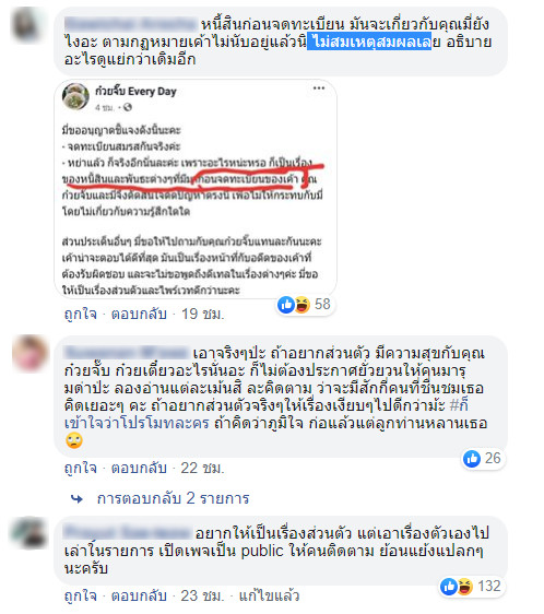 นอกจากนี้หลายคนยังรุมจวกเรื่องที่จดทะเบียนแล้ว หย่าแล้ว