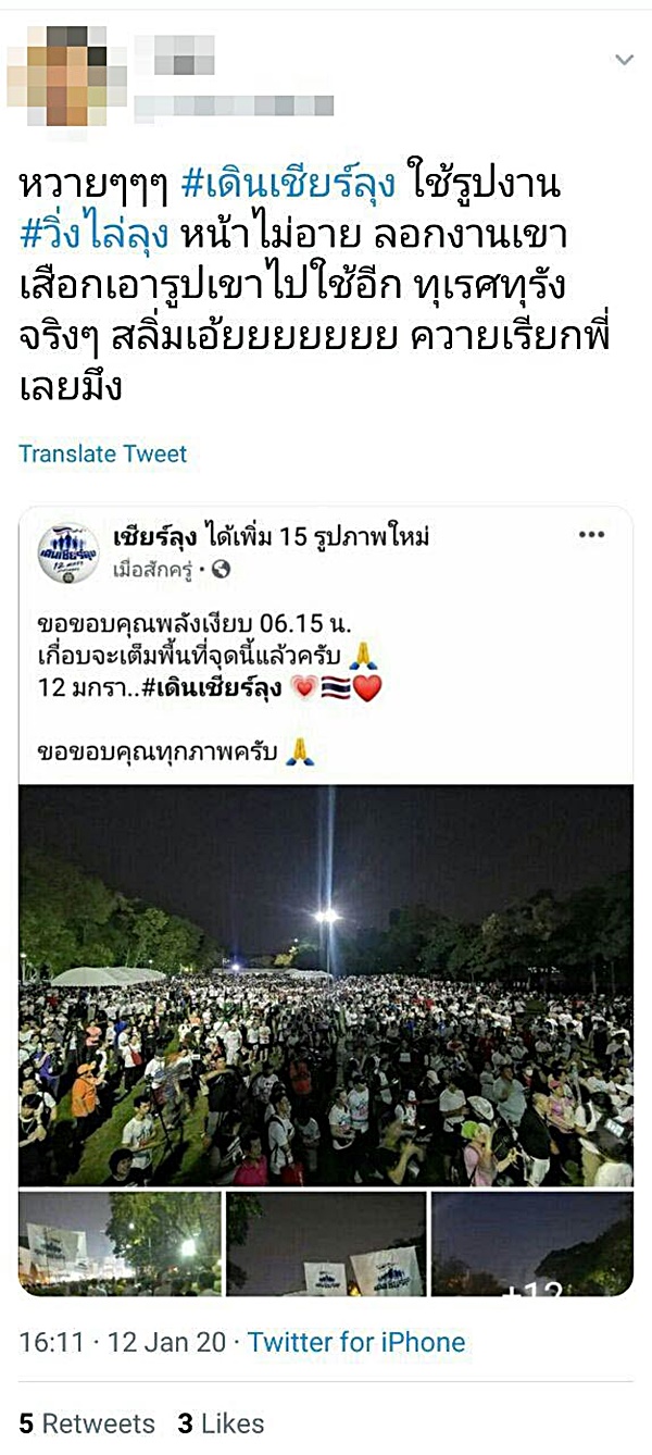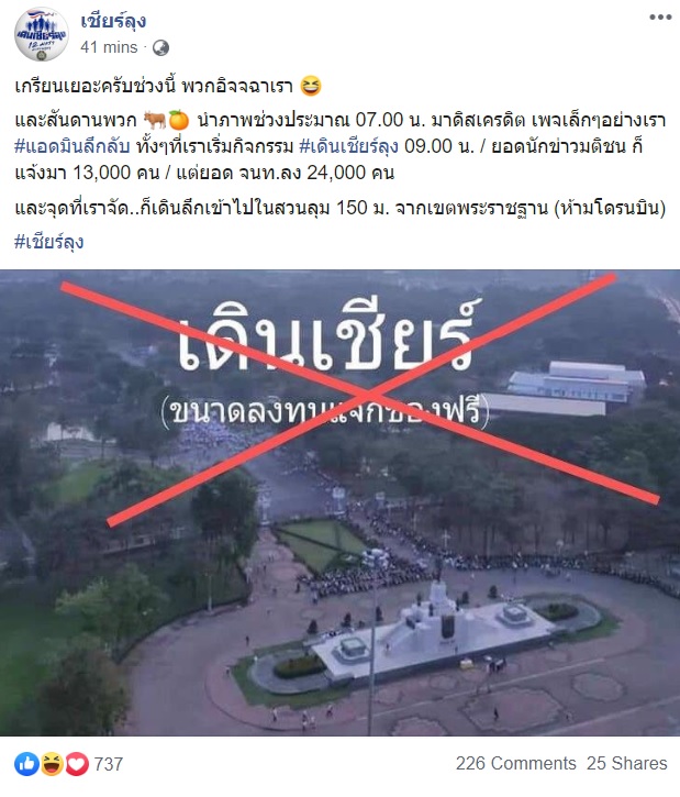 โซเชียลจับผิด งาน #เดินเชียร์ลุง โป๊ะแตก ใช้ภาพเก่า แถมฉกรูปงาน #วิ่งไล่ลุง เอามาโพสต์ลงเพจ ด้านแอดมินเพจเชียร์ลุง รีบออกโรงแจง ยอมรับทำผิดจริง แต่เป็นเพราะโดนวางยา