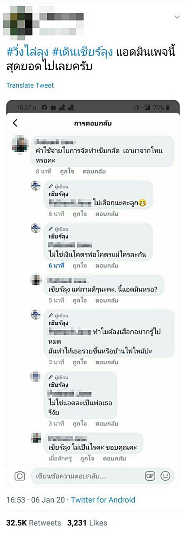 นอกจากนี้ เพจ เชียร์ลุง ยังโพสต์อีกว่า ช่วงนี้มีพวกเกรียนและอิจฉาเยอะ เข้ามาทำภาพดิสเครดิตกิจกรรม #เดินเชียร์ลุง ส่วนผู้เข้าร่วมกิจกรรมนั้น ทางสำนักข่าวระบุว่ามีมาร่วม 13,000 คน ล่าสุดเจ้าหน้าที่ระบุว่ามีคนมาเข้าร่วมมากถึง 24,000 คน